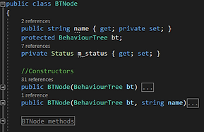 The behaviour tree let us easier define a prioritization between different behaviours, and when applicable, a sequence for several behaviours or actions. Part of the tree structure for one of our enemies can be seen below.